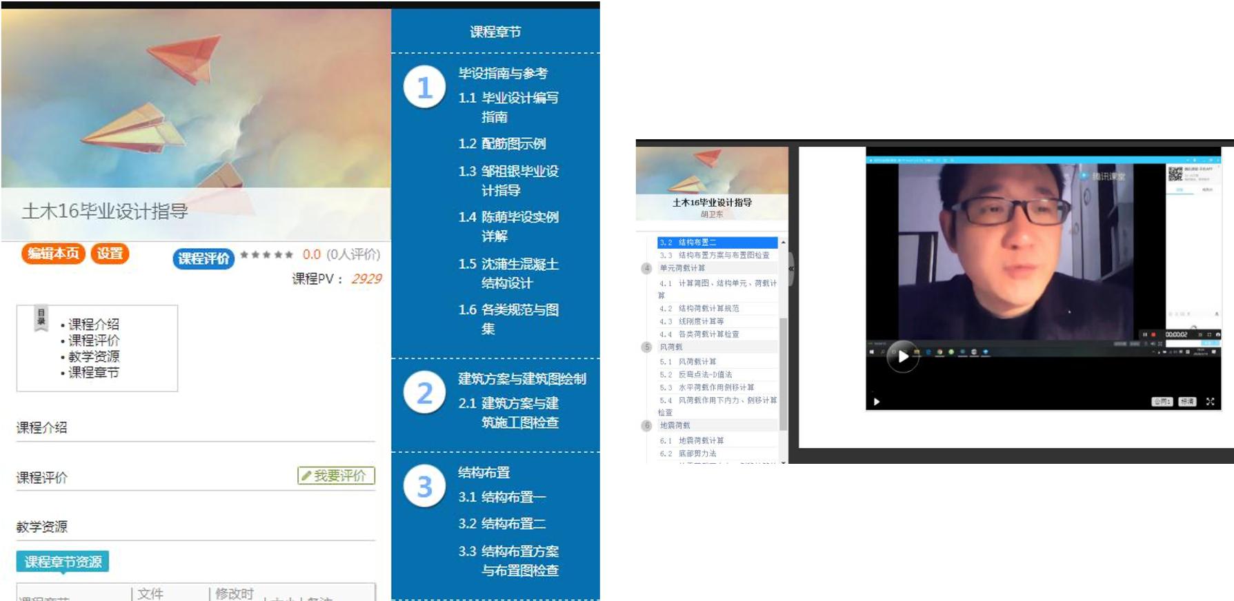 正月初八,有一定网课教学经验的胡卫东就开始在家里测试各教学平台,并选定“腾讯会议”作为自己线上教学工具。2月17号他开始按计划给毕业生们上网课,根据设计顺序进行知识点讲解。从荷载计算到内力计算,他一边给自己的毕业生直播授课,一边录屏后发送到学习通等网上学习平台作为教学资源同其他老师和学生共享。他的学生反映家里没有毕业设计相关的书,他就把自己珍藏的毕业设计案例册子一页页拍照,编码,整合成PDF发送给学生。