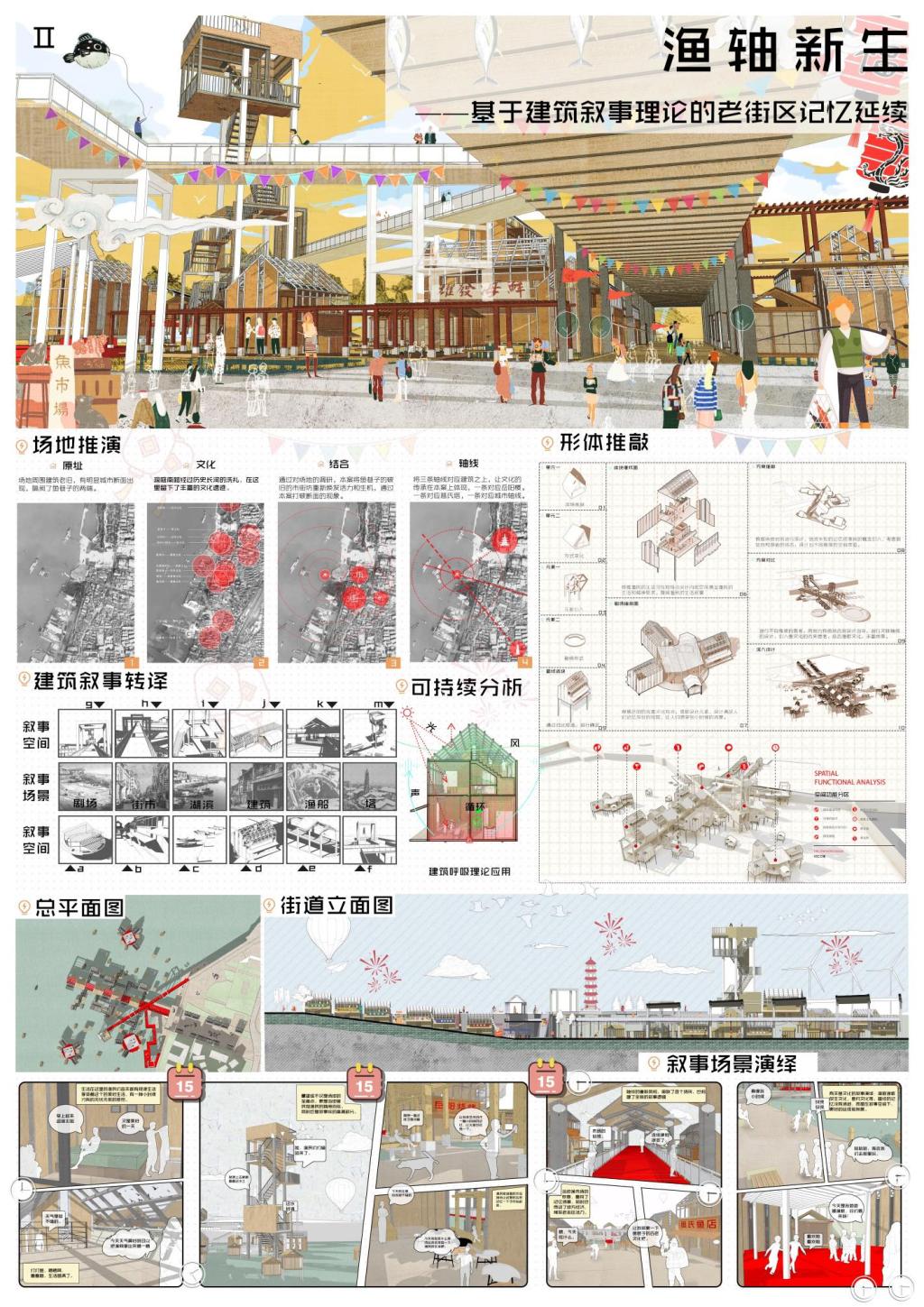 本次竞赛要求学生立足于调查研究,在理性分析的基础上进行设计,体现出研究型设计的特点。同时,主办方鼓励学科、跨专业的设计合作,以促成不同领域的深度合作,基于可持续性原则真正记住“城市乡愁”。土建学院在团队协作以及实践创新方面表现突出,最终,经评审委员会对入围作品现场评审,我校土建学院学生贺雅倩、吴圆的作品“维舟”和华仁杰、廖佳豪、胡倩倩的作品“渔轴新生—基于建筑叙事理论的老街区记忆延续”获得一等奖,林绵锋、来嫣然、戴旭飞等所在团队获得二等奖,朱俐彦、欧雯冰、梁宇琪等所在团队获得三等奖。