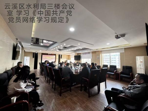 实习期间,特岗生们深入一线,积极参与各类水利工作。在竹埠港施工现场(2月19日,图1),他们实地勘察,学习工程建设流程与要点,在挖掘机轰鸣与建筑材料的堆砌间,了解水利基础设施建设的艰辛与重要性。在云溪区水利局,他们参与学习《中国共产党党员网络学习规定》的会议(图2),不仅提升专业技能,还注重思想建设,培养政治素养。