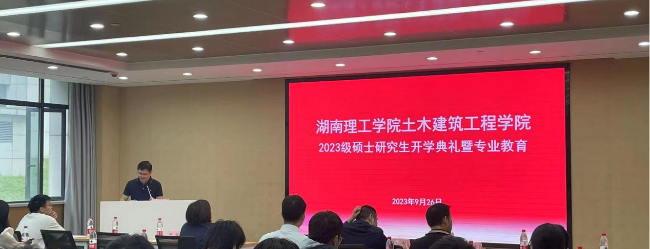 金色九月,秋风送爽,为欢迎2023级研究生新生的加入、促进学院研究生专业教育高质量发展,土建学院于9月26日上午10点在17104教室召开2023级硕士研究生开学典礼暨专业教育活动。本次活动由学院副院长李斌主持,学院院长童小龙、党委副书记钟铭金、副院长胡卫东、全体研究生导师、研究生辅导员及全体在校研究生参加。