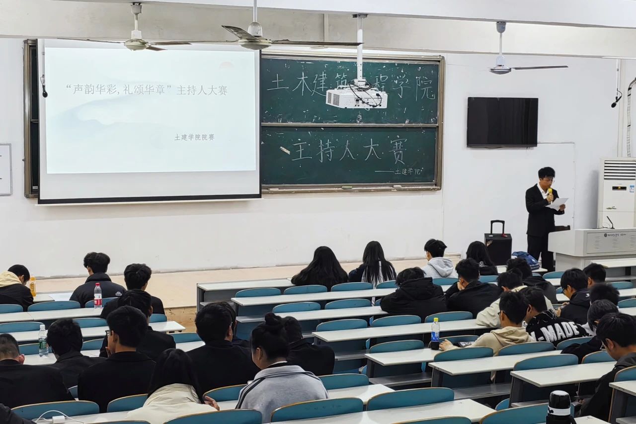 以声音彰显风格,以话语传递力量。11月22日晚7点,土建学院于9T1教室拉开第二届主持人大赛初赛的序幕。本次比赛由土建学院团学会文宣部承办,比赛前,选手抽取主持稿件,比赛流程总体分为自我介绍,即兴主持,评委提问三个环节。评委的评分标准为自我介绍、即兴主持、舞台风格、评委提问。 往届比赛的精彩延续至今,参赛选手们彰显了优秀的应变能力与台风魅力,在本次主持人大赛上各展风采。无论是锋芒毕露的新人,还是经验丰富的老将,无不怀揣着对主持的向往而站上舞台。观众们也十分热情,在认真倾听了选手们的演讲后给予了热烈的掌声,现场的氛围愉快却又不失比赛的紧张。最终,经过层层筛选五位实力出众的选手突出重围,让我们恭喜建一袁咪雅、土三邱飒文、建二胡艺缤、土一张振宇、土三汤佳欣进入复赛。 观众们的表现也十分热情,在认真聆听每一位选手的演讲后都将热烈的掌声献给了参赛选手们,现场的氛围愉快却又不失比赛的紧张。最终,经过层层筛选五位实力出众的选手突出重围,让我们恭喜建一袁咪雅、土三邱飒文、建二胡艺缤、土一张振宇、土三汤佳欣进入复赛。 本次活动旨在推选出我院新一届的优秀主持人才,同时也为热爱主持的同学们提供了一个展示自身主持能力的舞台,每一位参赛选手都在比赛中付出了努力与汗水,他们用自己的热情与才华诠释了对主持艺术的热爱与追求,为学院带来了一场场精彩绝伦的视听盛宴。我院的同学们用实际行动展示出了当代大学生应该具备的良好精神面貌与青春气息。让我们一起期待决赛选手们的精彩表现。 (初审/王志峰,复审/向南,终审/钟铭金)