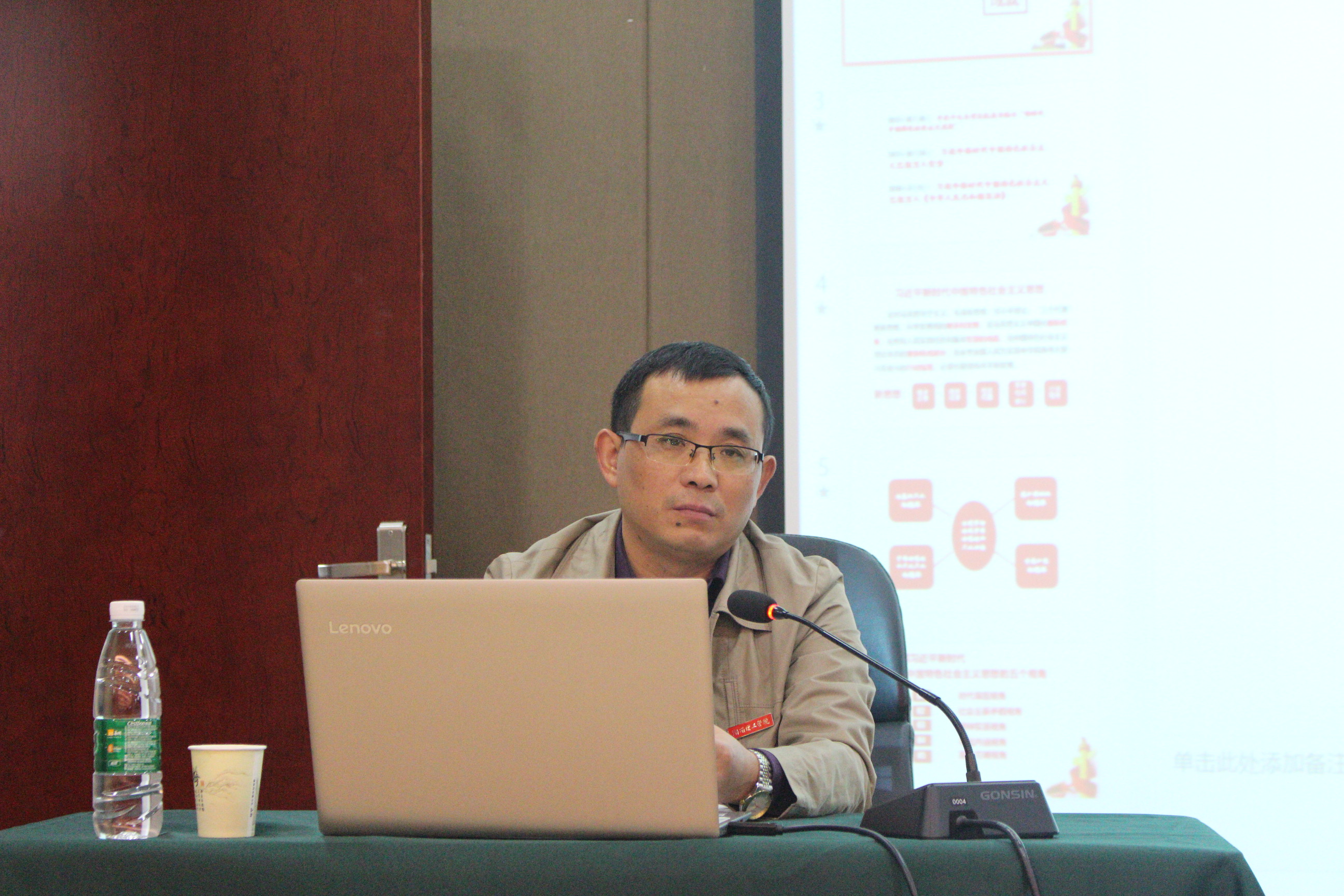 谢贵辉以“用习近平新时代中国特色社会主义思想武装头脑”为主题,从时代课题视角、社会主要矛盾视角、精神实质视角、丰富内涵视角、基本方略视角对习近平新时代中国特色社会主义思想的丰富内涵和重大意义进行了阐述。他指出,要树牢“四个意识”、坚定“四个自信”、践行“两个维护”,要认真学习和深刻领会习近平新时代中国特色社会主义思想,积极投身改革开放和社会主义现代化建设的实践,按照新时代绘就的宏伟蓝图,开拓进取,埋头苦干,艰苦创业,励精图治,创造更加辉煌的业绩和成就。