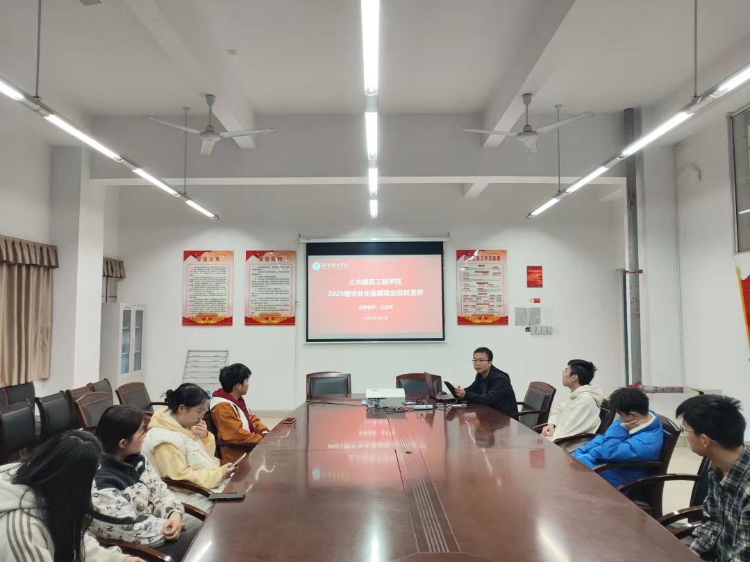 4月7日上午10点,土建学院在16栋学院会议室召开基层就业项目宣讲会,就业专干老师王志峰和23届部分党员同学和未就业同学参加会议。