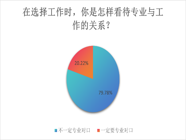 调查中显示79.78%的学生认为专业与工作不一定需要对口,20.22%的学生认为专业与工作一定要对口。