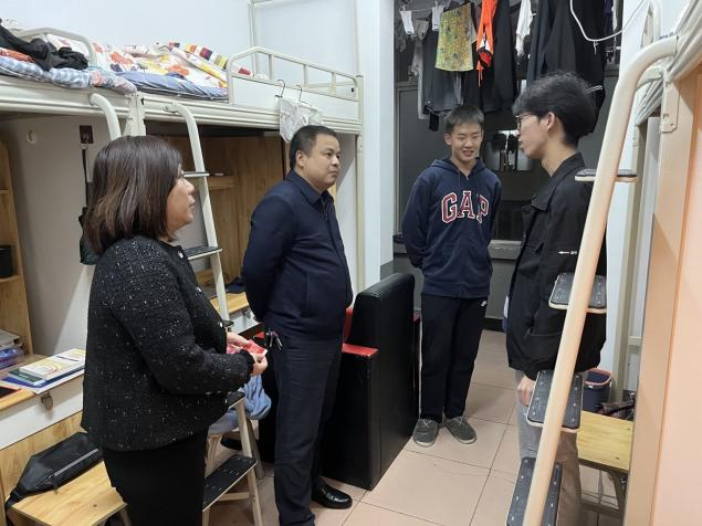 为关爱、关怀学生,进一步了解学生思想,生活及学习情况,11月22日晚9点30分,学工部部长陈绪清在土建学院党委副书记钟铭金及21级辅导员华蓉陪同下走访土建学院学生寝室。
