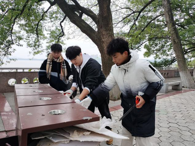 活动伊始,付圣对此次义务劳动的开展分配劳动工具并进行工作安排,随后,由各负责人带队按分区负责打扫,团培成员手持清洁工具,对南湖岸边的烟头、纸屑、塑料袋等垃圾及建筑物上的污渍进行仔细清扫与清洁,并集中处理卫生死角。在此过程中,团培成员弘扬吃苦耐劳的优良传统,以实际行动引导在校大学生投身于爱护环境的实践之中,为维护南湖水清、岸绿的环境贡献自己的一份力量。