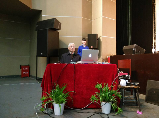 周世光老先生的报告幽默风趣,情真意切,受到在场师生的的热烈欢迎,多次爆发出热烈的掌声。(学生记者/唐媛媛 樊彪 摄影/唐磊)