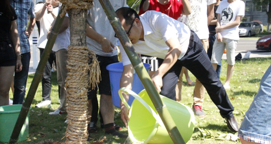 捐赠现场,王庆华等领导老师与毕业生代表一起为捐赠树木活动揭牌,为树木培土、浇水。班主任向南感谢同学们对母校发展做出的积极贡献,并勉励大家与所捐赠的树木一起成长,努力成为国家、社会的栋梁之材。毕业生代表表示:“毕业后无论走到哪里,都将像所捐赠树木的根系一样,永远紧紧地跟母校连在一起,这是象征着感恩与希望,更是对母校的认同感、归属感。”(学生记者/周伊慧 摄影/肖雄)