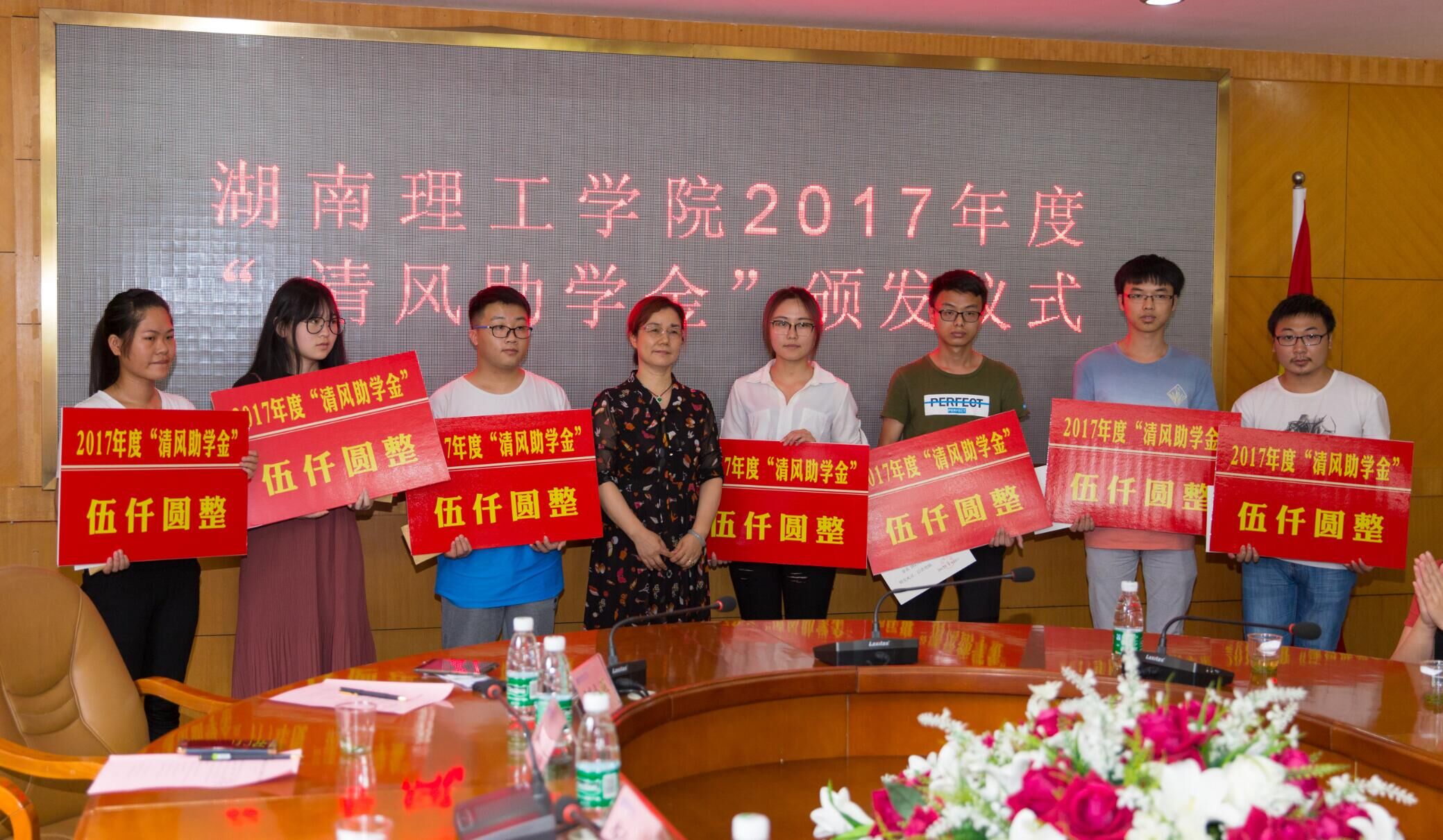 据悉,“清风助学金”是湖南天元和项目管理有限公司总经理朱立春女士在校设立的助学金,主要资助的对象是我院品学兼优的贫困学生。2017年度“清风助学金”的受助学生为向志泽、向锦明、肖雅馨、孟雪婷、申艳琴、单文丽、李定乾、何登峰8位同学。(学生记者/邹娇)