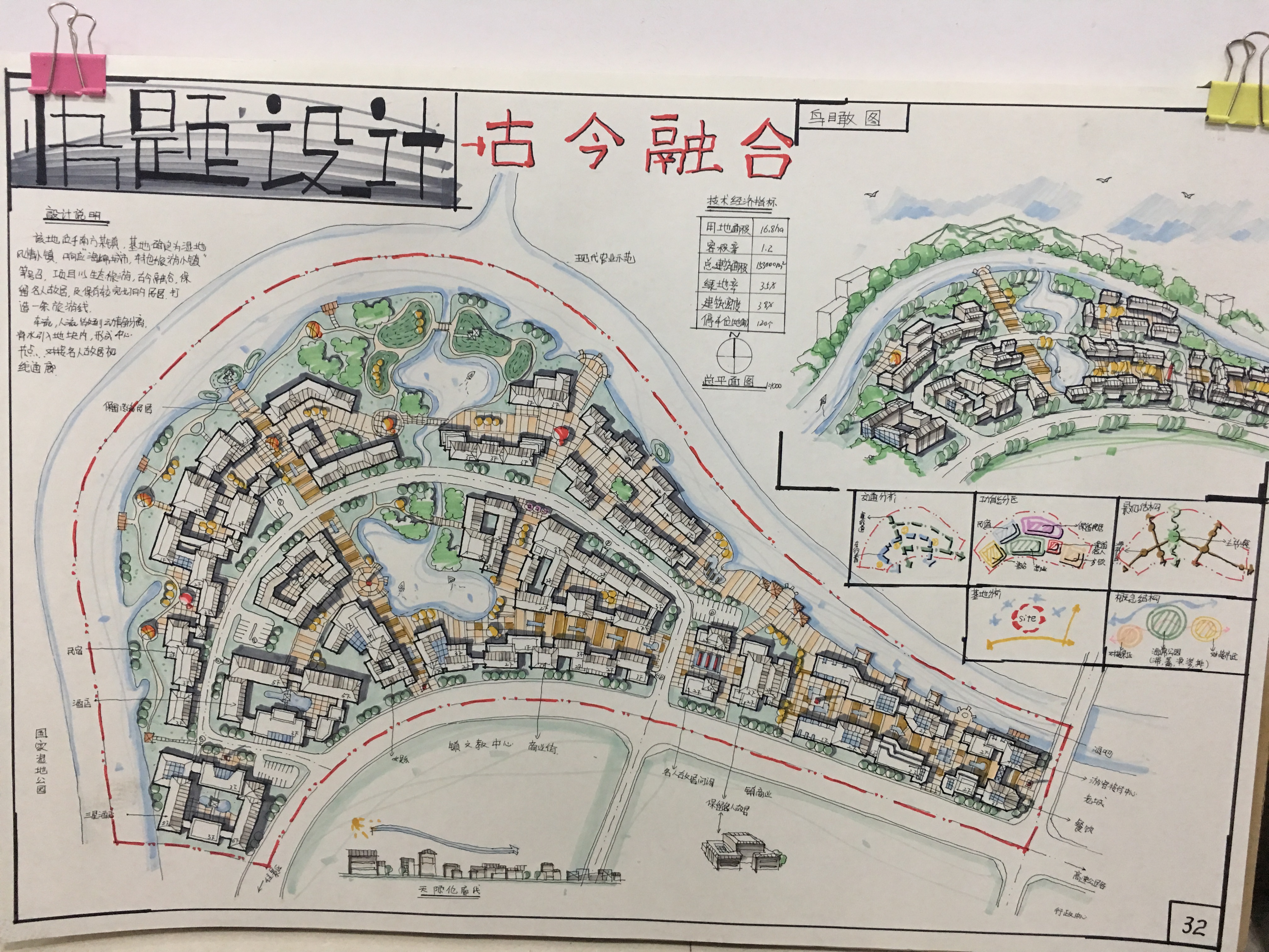 此次比赛以“南方某镇旅游接待综合服务区规划设计”为题,表现形式自由,彩色图或黑白线条图均可。要求参赛选手在6个小时内快速构思完成地块的规划设计。(土建学院/曹诗怡)