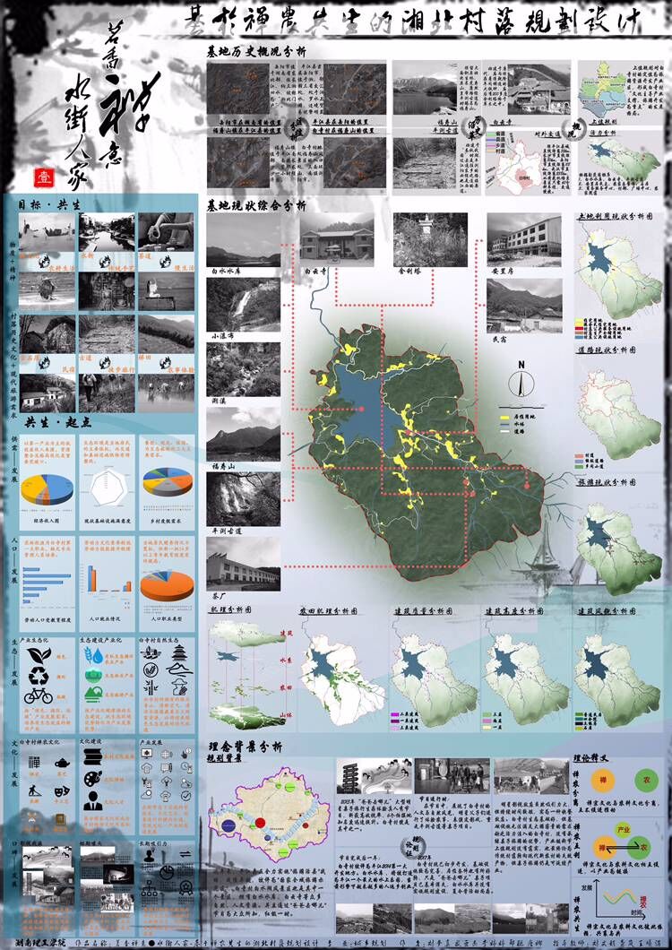 土建学院参赛团队选择的是自选基地规划设计。自6月通过报名预审获得参赛资格后,同学们积极进行赛事准备和选题,7月中旬在平江县福寿山镇白寺村进行了多次实地踏勘与调研,此后又多次进行了资料的整理和方案的讨论与完善,最终于11月15日顺利向组委会提交了参赛成果。