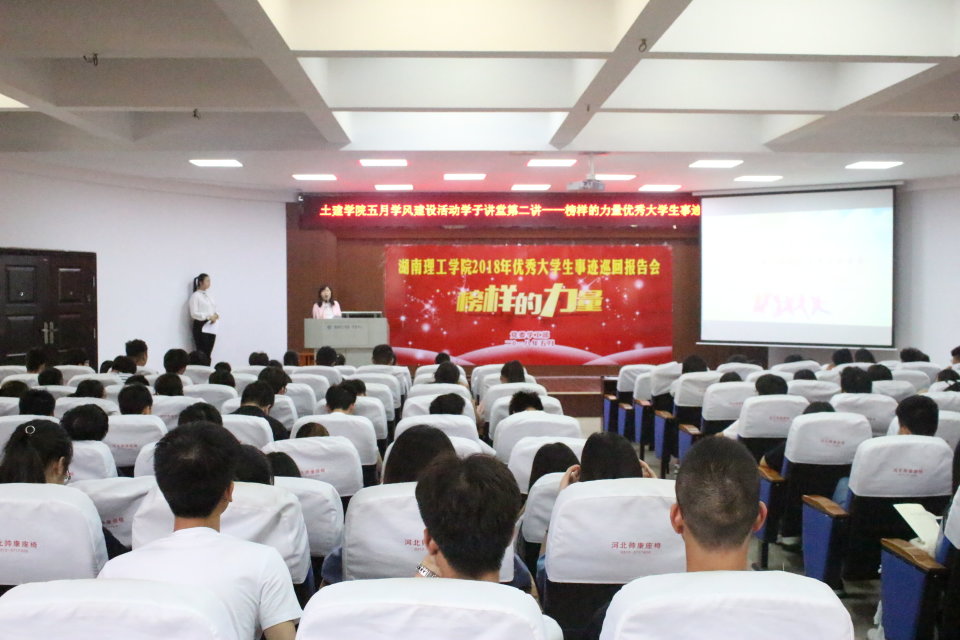 为响应学校号召,充分发挥优秀大学生的模范带头作用,6月5日下午,土建学院五月学风建设活动学子讲堂第二讲——“榜样的力量”优秀大学生事迹报告会于6栋学术报告厅举行。来自化工、信息、机械、物电学院的四位优秀大学生代表为土建学院师生作报告。土建学院相关负责人及150名学生参加。