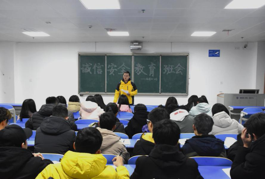1月2日晚,土建学院18级各班于12栋自习室召开安全诚信主题班会,唐佼、朱莎莉等班主任老师,以及18级辅导员周凯红参与此次活动。