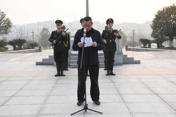 7点整,仪仗队出旗。伴着《义勇军进行曲》的响起,全体唱国歌、行注目礼,庄严肃穆。升旗礼毕,18级学生代表易颖姿作国旗下的讲话。她以“坚定发展、贡献力量”为主题,呼吁当代大学生加强自身思想建设,为学校发展与国家建设贡献力量。