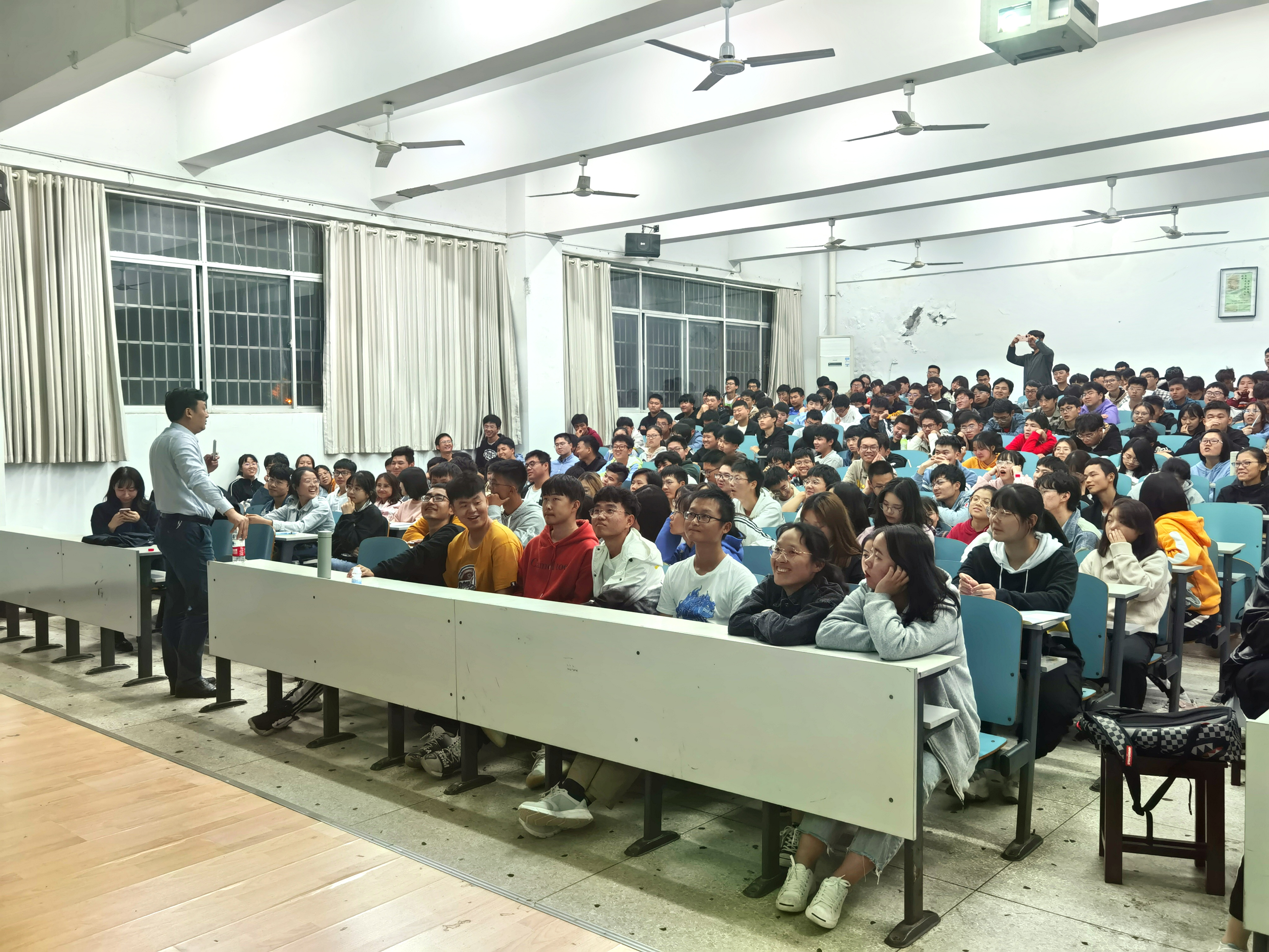 毛伟以“遇见更好的自己”为主题,从学会适应、构建自信、提升能力和真心相待四个方面进行阐述,介绍了大学生活适应的主要内容、构建自信的方法、大学期间需要提升的九大能力,指出了平等、尊重、宽容、沟通是真心相待的重要内容。他用生动鲜活的实例,由浅入深、引人入胜地为学生阐释心理健康问题,学生们认真聆听,多次为毛部长幽默风趣的演讲风格热烈鼓掌,并多次与毛部长进行互动,大家表示受益匪浅。