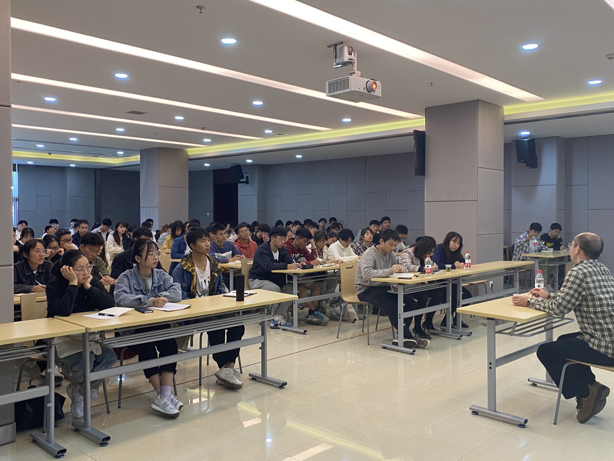 王庆华以《当前的世界政治经济形势》为题,从当前的世界经济政治形势引入,从中西方的价值观、人权主义、民族主义等几个角度对比中国和西方世界,分析了全球新冠疫情形势下国家安全面临的重大考验,表明当前的国际形势是以美国为首的西方国家在二战后建立的国际政治经济体制,同时以中国为首的新兴国家力量正在逐步崛起。他希望同学们坚定文化自信,应当进一步增强责任感使命感,抓住难得机遇,义不容辞地挑起振兴中华的重担,成为社会主义文化建设的中坚力量。(撰稿/土建学院新闻部)
