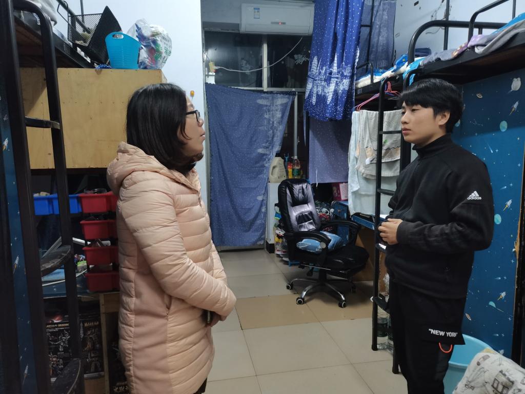 钟铭金与全体辅导员深入学生寝室,强调了寝室用电安全,提醒学生妥善保管贵重物品,养成良好的卫生习惯,注意寝室用电安全和防寒保暖,同时,询问了学生学习和生活状况,建议学生合理安排时间,认真规划学习与生活。罗家齐、黄钰清鼓励考研学生坚持走完关键一程,希望大家共同营造良好的寝室环境,并预祝学生考研大捷。