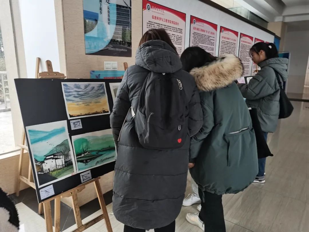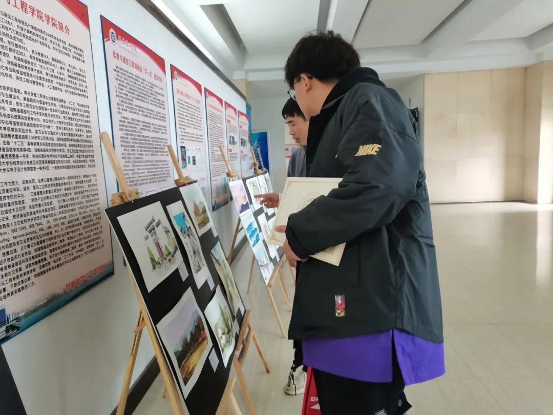 12月8日至15日,土建学院于逸夫楼举办第十三届建筑文化节——“写生作品展”。土建学院17级辅导员罗家齐、19级辅导员黄钰清及部分学生到场观展。