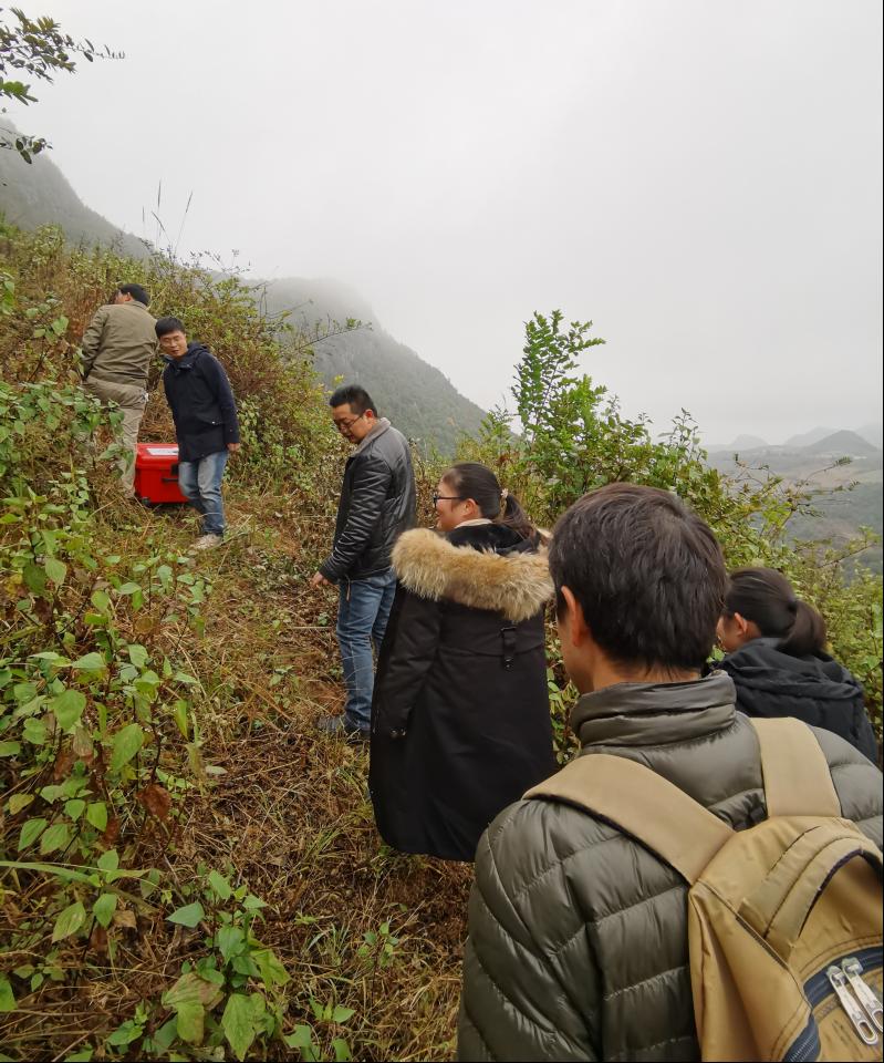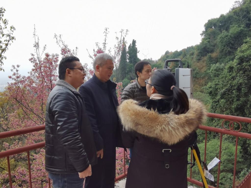 土建学院老师一行在昆明法华寺石窟前进行工作方案讨论
