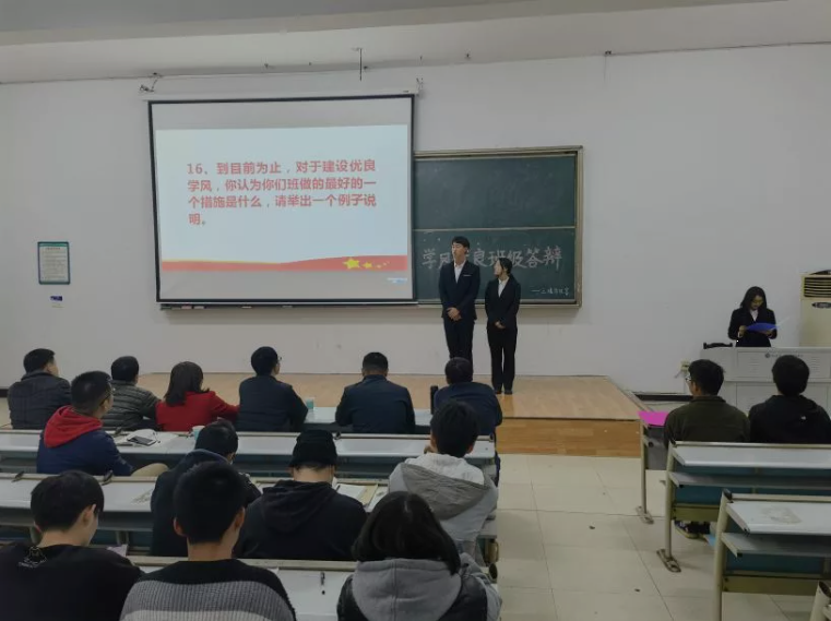 演讲环节中,各参评班级学生代表结合PPT,从“班级情况概括”、“班级建设工作”、“班级荣誉”、“班级未来展望”等方面进行详细汇报。答辩环节中,学生代表就“班委如何解决班级评选评优时出现的矛盾”、“如何提升班级凝聚力”、“班委如何引导班上同学正确使用网络资源”等问题做出合理回答,展现出土建学子良好的精神风貌与学院优良的学风。