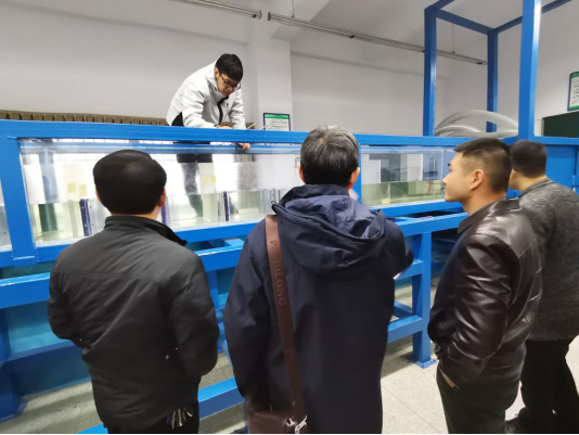 刘晓平教授以国内垂直槽鱼道的发展与思考为题,从“鱼道的历史、垂直槽鱼道的形成、垂直槽鱼道的特点、垂直槽鱼道设计、垂直槽鱼道的运行与管理”等方面进行学术汇报和交流。交流期间,各位专家教授参观了鱼道模型设计实验室,现场观摩了鱼道设施对洄游鱼类等生物的积极作用,充分满足水生生物的生态需求。
