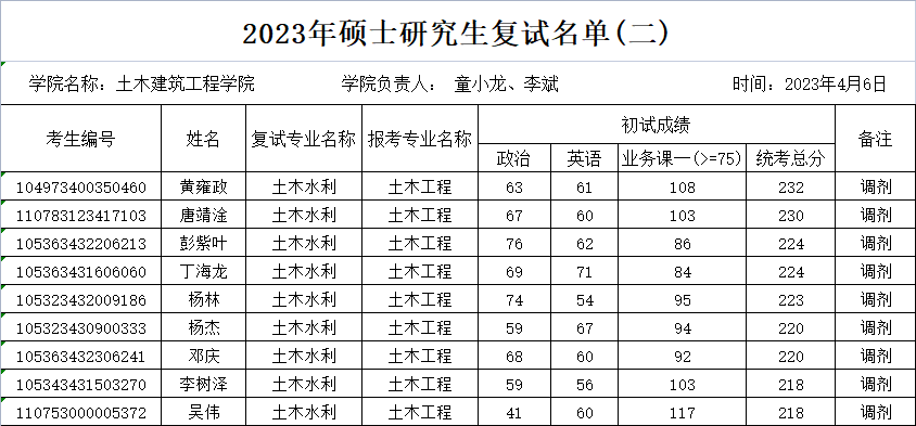 (1)接受调剂的学科专业:土木水利