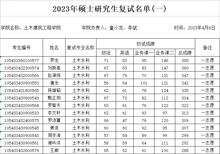 2023年硕士研究生复试名单(一)
