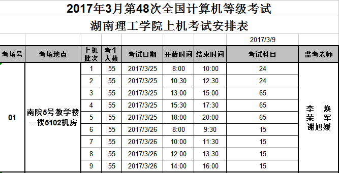 根据湖南省教育考试院有关文件精神,2017年3月25、26日举行全国计算机等级考试。为了加强考试管理,严肃考试纪律,确保试卷安全,防止发生重大违纪舞弊事件,保证考试公平、公正顺利进行,现将本次考试考务工作的有关事项安排如下: